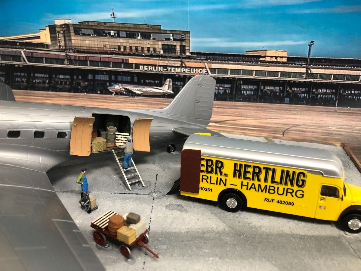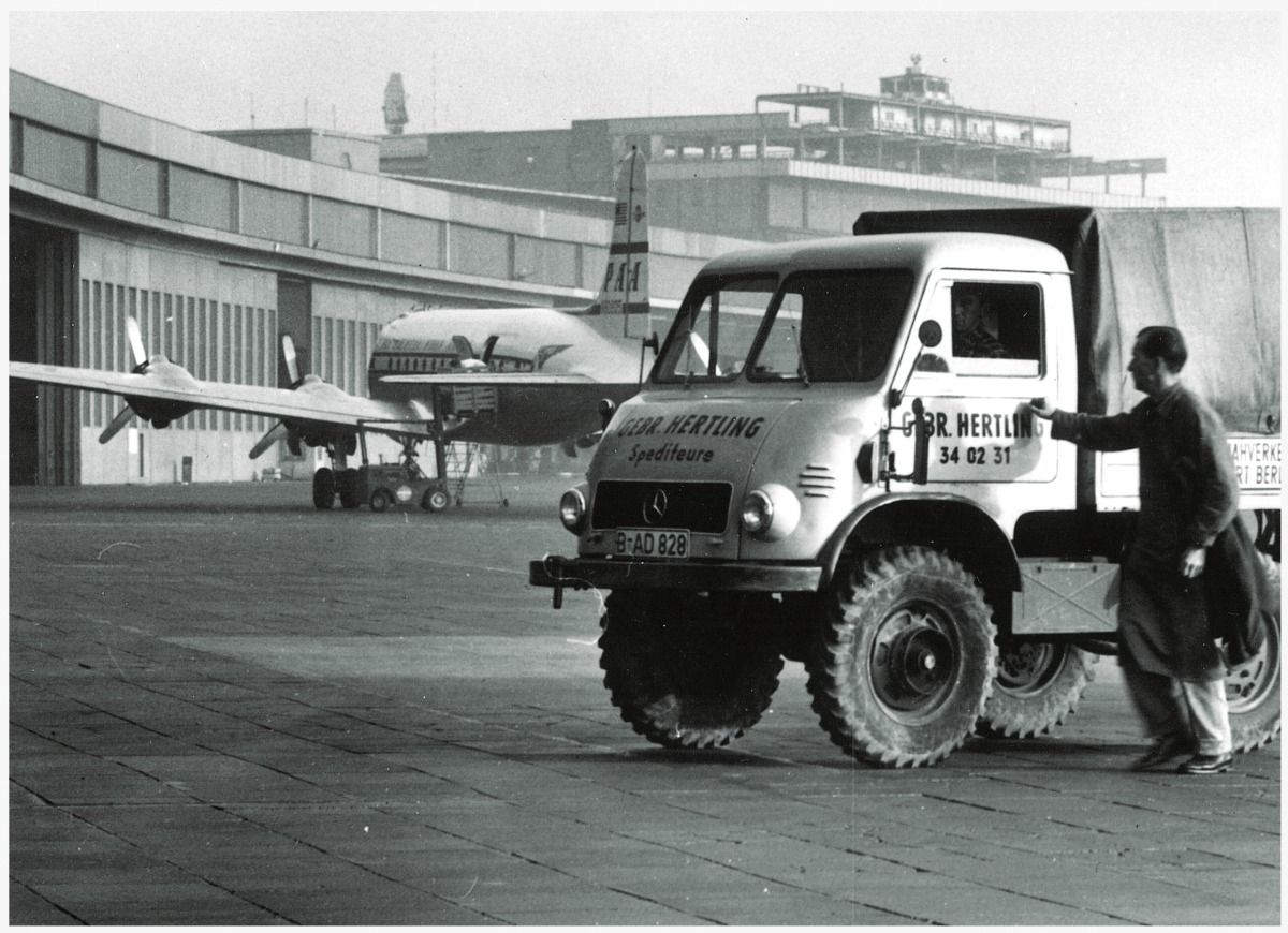 We congratulate on 100 years of Tempelhof Airport! Since its founding on October 8, 1923, Berlin - Tempelhof Airport was one of the first commercial airports in Germany. The moving company Hertling loaded air freight shipments on the Tempelhofer Field, as can be seen in the historical photo and the model replica by the Hertling model makers. The airport became world famous thanks to the airlift during the Berlin blockade in 1948/49. Air traffic was finally stopped on October 30, 2008. The building, now the largest architectural monument in Europe, and the airfield have been used in a variety of ways since the airport was closed, such as for trade fairs, sports and music events. Refugee accommodation is now also housed in the former hangars. The former airfield is now the world's largest open space in a city. The Berliner Unterwelten e.V. offers very interesting tours through the former airport property.