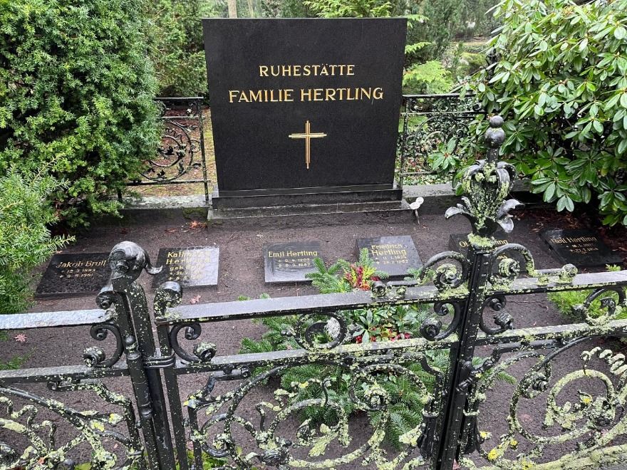 This is also the final resting place of our company founder Emil Hertling and that of his descendants, especially the 2nd and 3rd generation of Hertling entrepreneurs. Unfortunately, we recently discovered that the doors to the grave fences of the Hertling family's two grave sites had apparently been stolen. It's unbelievable that there are actually people who go to cemeteries themselves to steal anything that isn't nailed down. We find this extremely disrespectful. We are at a loss for words. What times are these when not even the final resting place is spared!!!